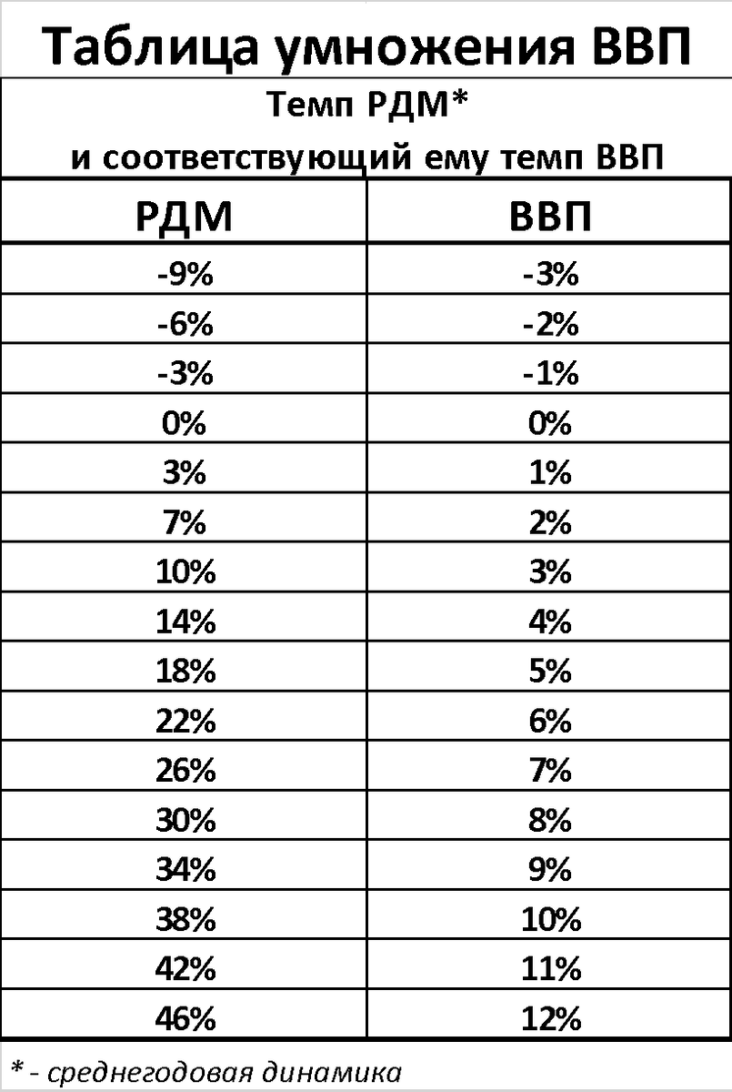 По «таблице умножения ВВП» такому росту РДМ соответствует рост ВВП на 4%.