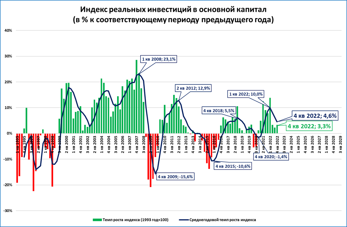 В 2022 году инвестиции впервые превысили уровень последнего года существования СССР. Рост продолжится и в 2023 году.