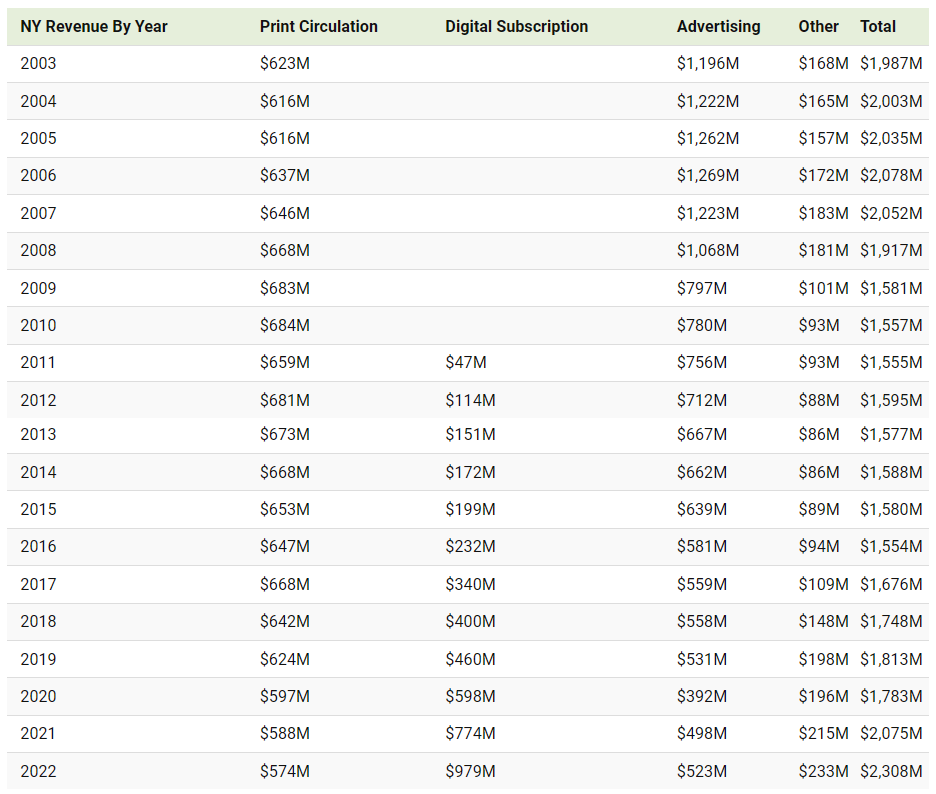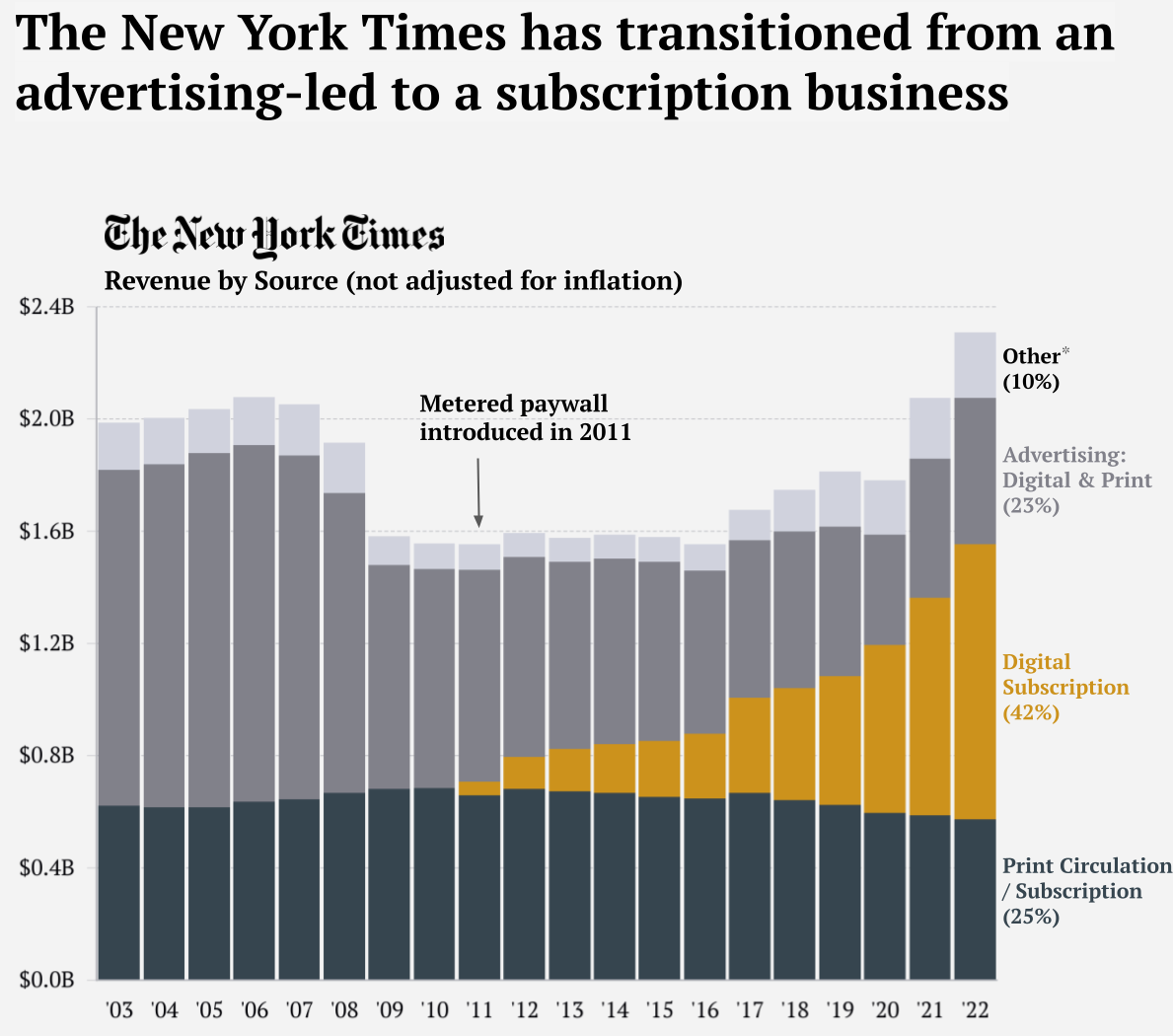 The NY Times всегда была одной из самых популярных газет в мире. До запуска модели цифровой подписки они зарабатывали половину своего дохода от печатной и онлайн-рекламы.