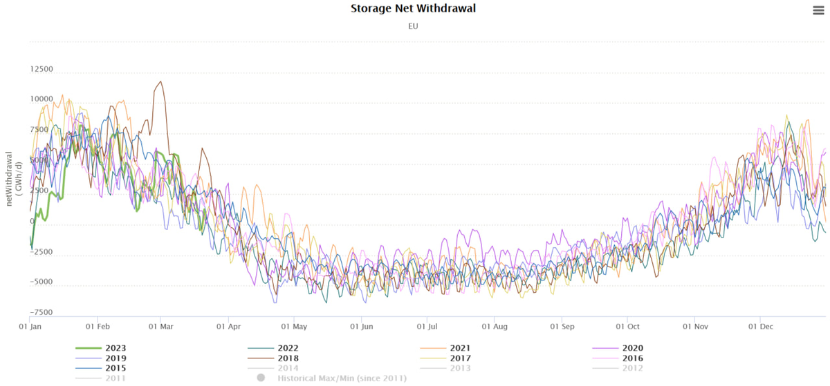 Также стоит отметить, что забор газа из хранилищ вернулся примерно в средние для этого времени показатели за последние 8 лет.