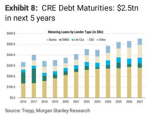 Смотрите, в следующем году должно быть погашено коммерческой ипотеки на половину триллиона долларов США. А в течении следующих пяти лет еще на 2,5 трлн $. БОльшая часть этого замечательного кредитного портфеля находится активах небольших (тех самых региональных) банков.