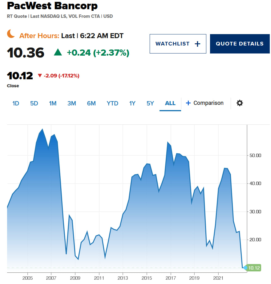 Знакомимся, еще один региональник - PacWest Bancorp. Банк ливнул позавчера на 17% после того, как сообщил о себе немножко информации...