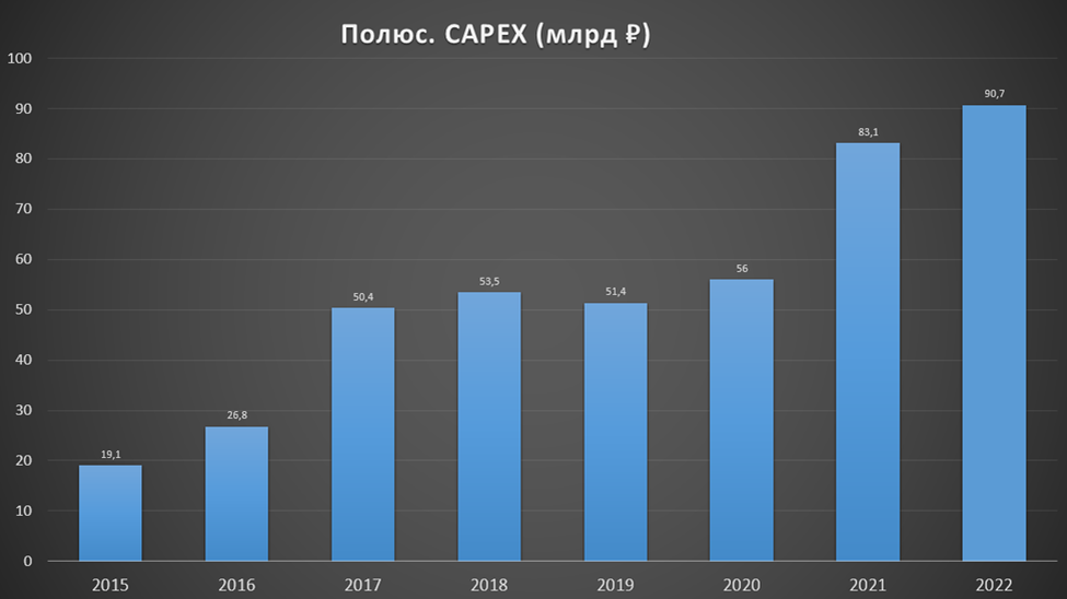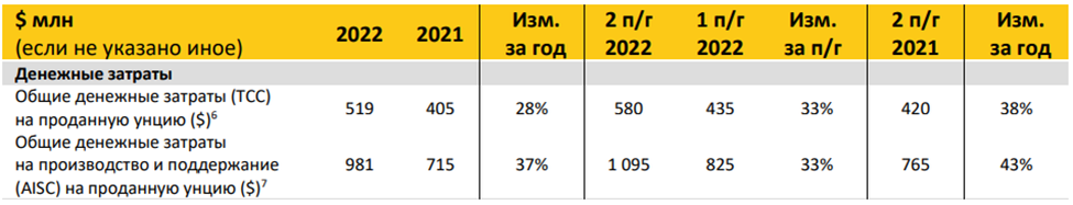 Во втором полугодии 2022 года капитальные затраты составили $735, что на 91% превышает затраты за первое полугодие. Рост связан с тем, что Компания ускорила реализацию программы капвложений.