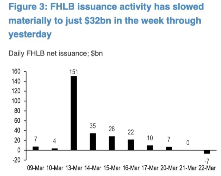 По состоянию на 23.03 ФРС показала, что кредитование банков частично перетекло из дисконтного окна в BTFP, но общая сумма почти не изменилась. Фондирование через FHLB тоже стабилизировалось на одном уровне.