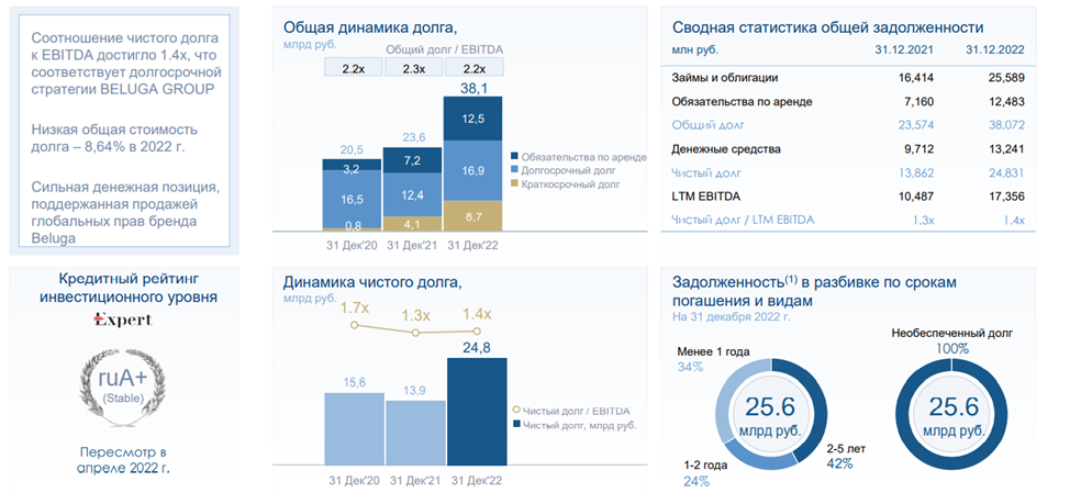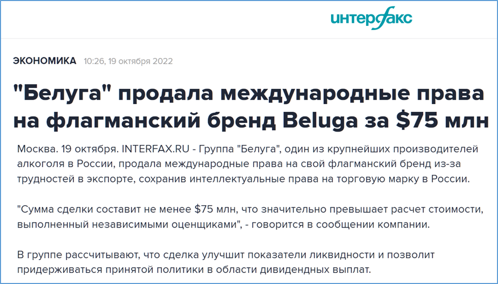Интересно, что 3 млрд компания получила за продажу международных прав на флагманский бренд Beluga. Но возможно, в 2023 году уже получила или скоро получит еще 2-3 млрд, т.к. сумма сделки составляла не менее $75млн.