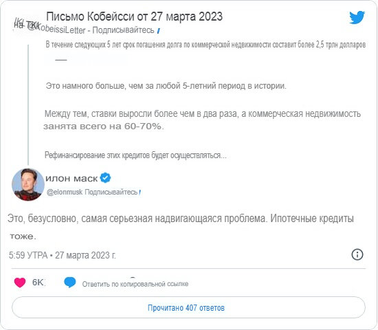 По словам Илона Маска, кризис коммерческой недвижимости является «безусловно, самой серьезной надвигающейся проблемой», стоящей перед нашей экономикой…