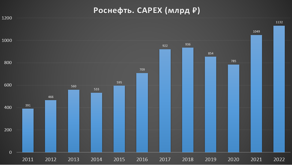 Капитальные затраты за 2022 год составили 1,1 трлн руб., что на 8% выше относительно 2021 года. Увеличение в основном связано с плановым ростом инвестиций в проект «Восток Ойл».