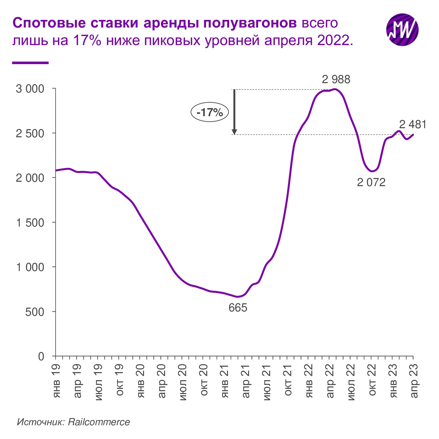 🚂 Globaltrans. Восстановление объемов грузовых ж/д перевозок, а также сохранение ставок аренды полувагонов на высоком уровне (на 18% ниже максимумов 2022) позитивно для Globaltrans.