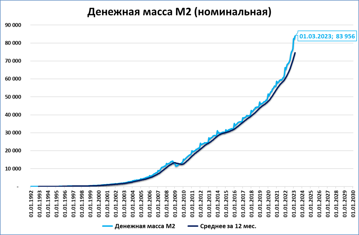 Номинальная денежная масса выросла до 83,956 трлн рублей – это исторический рекорд.