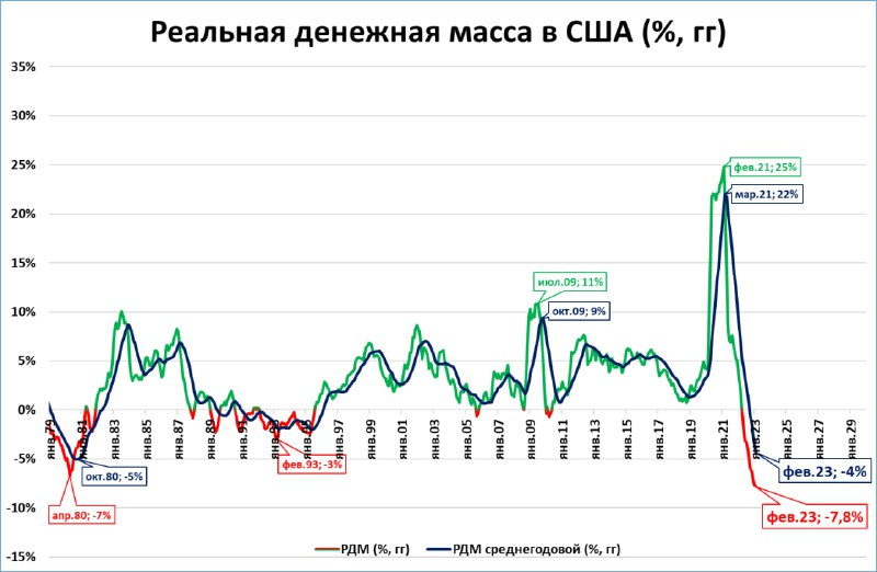 А падение номинальной денежной массы такими темпами (-2%) в последний раз наблюдалось в 1938 году.
