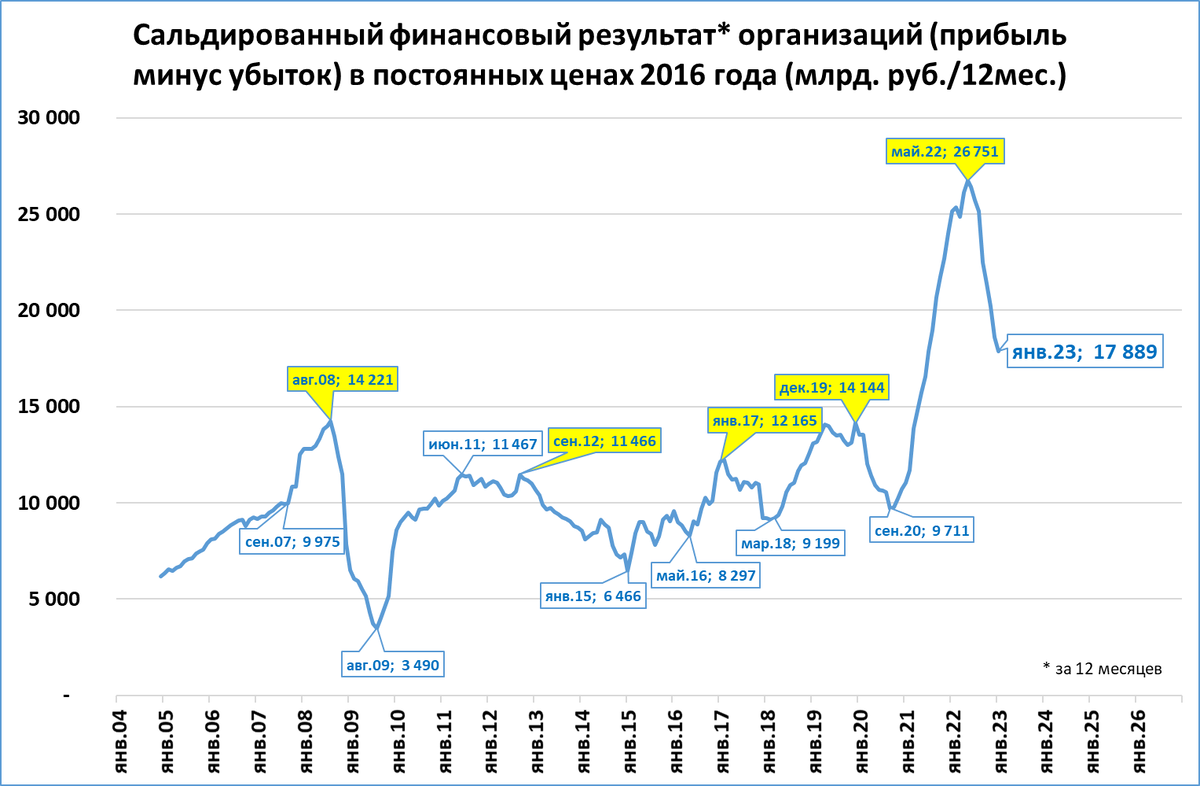 Реальная прибыль за 12 месяцев (скользящий год) составила 17,9 триллионов рублей (в ценах 2016 года).