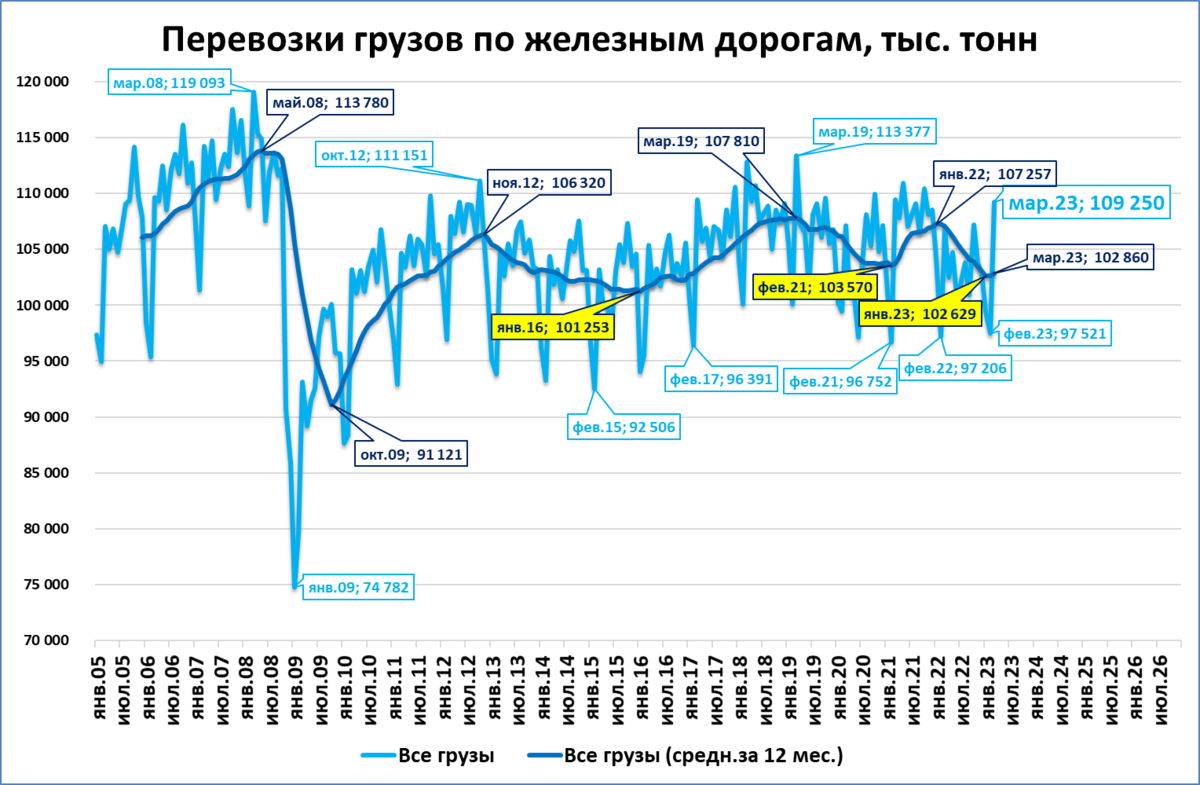 По нашей оценке, объём перевозки в марте составил около 109 млн. тонн.