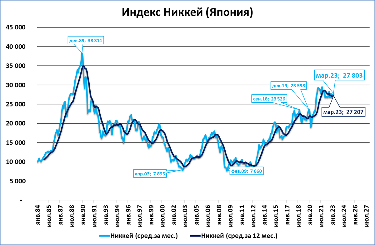 Японский фондовый индекс Никкей в марте составил 27,8 тыс. пунктов.