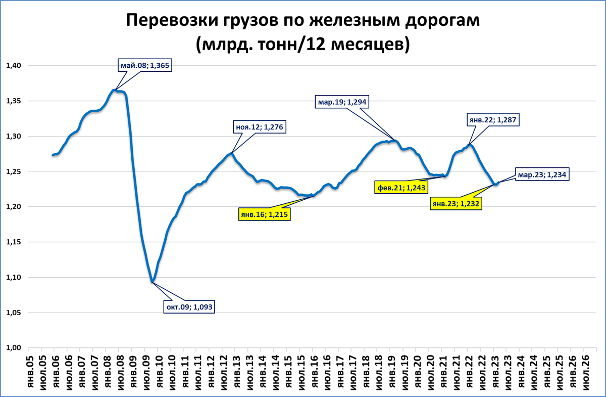 Объём перевозки за 12 месяцев (скользящий год) вырос до 1 млрд 234 млн. тонн.