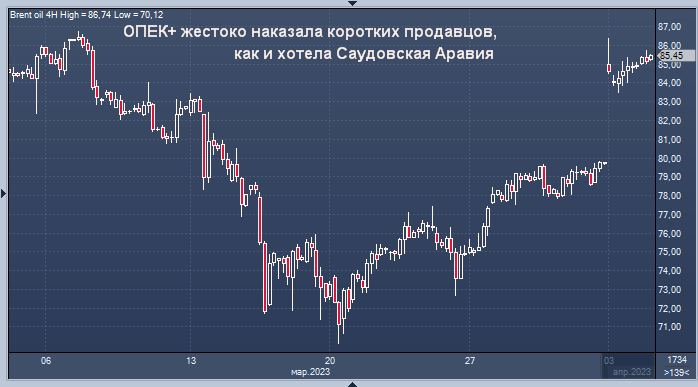 Нефть выросла примерно на четверть после падения в середине марта до самого низкого уровня с конца 2021 года. Первоначально восстановление было вызвано ожиданиями роста спроса в Китае после внезапного прекращения Covid Zero, а также перебоями в поставках из Ирака. Затем рост был усилен решением ОПЕК+ убрать с рынка более 1 миллиона баррелей ежедневной добычи.