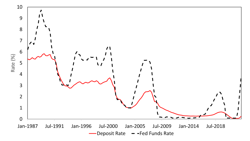 Надо отдать Рубини должное: он упоминает и про обратную сторону растущих ставок, снижение стоимости банковских пассивов. Если рыночная ставка растёт, а ставка, выплачиваемая по депозитам — не растёт, или растёт слабо, такой пассив становится для банка дешевле, ибо позволяет заработать на разнице между стоимостью привлечения и стоимостью размещения клиентских средств.