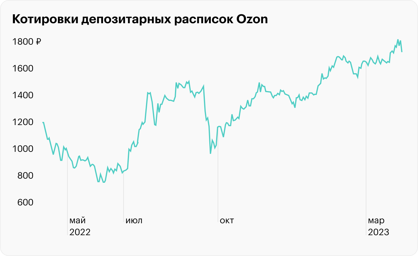 Инвесторам не понравился отчет Ozon: к 18:00 дня выхода отчета котировки депозитарных расписок компании потеряли более 4%.
