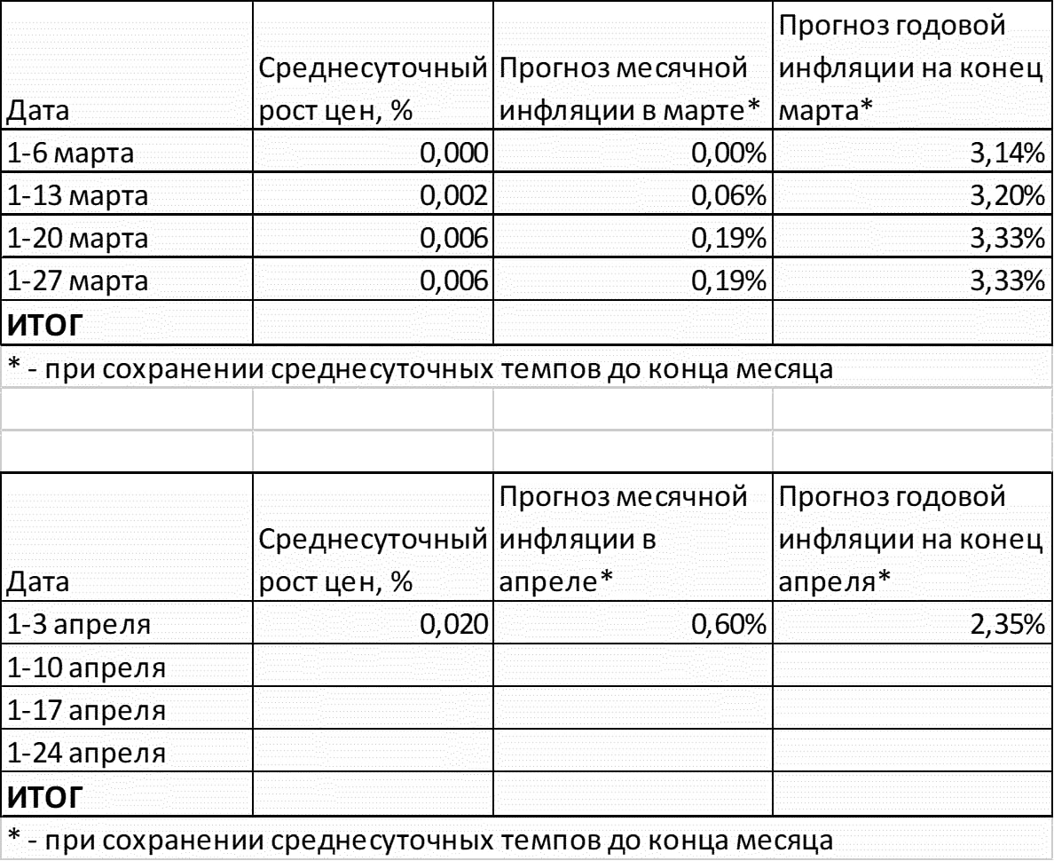 За первые три дня апреля среднесуточный рост цен составил 0,020%.
