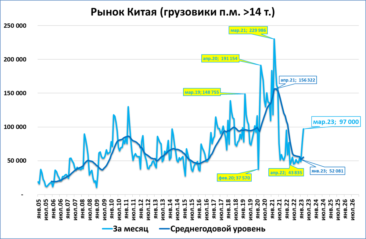 В марте, по предварительным данным, рынок Китая вырос до 97 тыс.