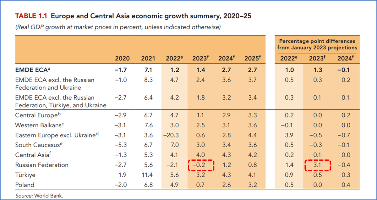 ● Прогноз Всемирного банка по экономике России на 2023 год (-0,2%) привычно отстаёт от жизни.