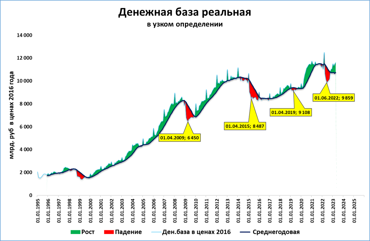 Ещё для понимания ситуации: даже в удачные для экономики 2000-е РДМ в отдельные годы росла медленнее. Так, в 2002 году рост РДМ на протяжении всего года был менее 18%, то есть, ниже, чем сейчас.
