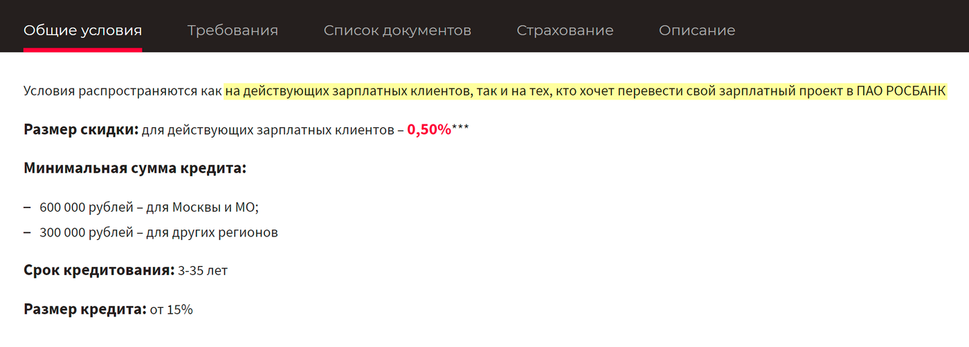 «Росбанк» предлагает скидку по ставке 0,5% и для действующих зарплатных клиентов, и для будущих