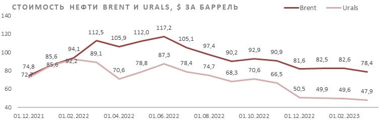 1. Цены на нефть остаются на повышенном уровне, хотя и снизились относительно аномальных значений 2022 года. Инвесторы опасаются, что замедление экономики развитых стран может отразиться на спросе, что и сдерживает цены. Однако неожиданное решение ОПЕК+ о сокращении добычи и восстановление спроса в Китае, на наш взгляд, могут привести к дефициту на рынке ближе ко II полугодию, на фоне чего мы считаем устойчивое снижение стоимости Brent ниже отметки в $80 за баррель маловероятным.