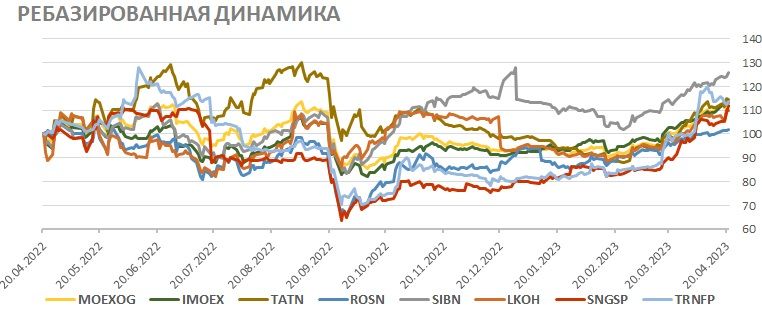 В последние месяцы весь сектор также поддержало существенное ослабление рубля, снижение геополитических рисков, ожидание финальных дивидендов за 2022 год и решение ОПЕК+ дополнительно сократить добычу. Благодаря данным факторам и уходу ряда рисков практически все представители сектора показали рост на 20% и более от февральских минимумов.