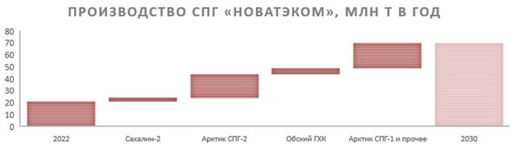 В конце текущего года «Новатэк» планирует ввести в эксплуатацию первую линию проекта «Арктик СПГ-2», а в 2026 году завод может выйти на проектную мощность в 19,8 млн тонн. Кроме того, в 2023 году ожидается принятия финального инвестиционного решения по проекту «Обский ГХК», проектная мощность которого может составить не менее 5 млн тонн СПГ в год, а запуск ожидается в районе 2027-2028 года. Отметим, что «Обский ГХК» станет первым среднетоннажным проектом, где будет использоваться собственная технология сжижения.