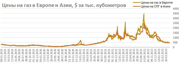 Другим важным положительным фактором для «Новатэка» остается благоприятная конъюнктура на рынке газа и нефти. Для замены российского трубопроводного газа ЕС был вынужден обратиться к рынку СПГ, что вместе с постепенным восстановлением спроса в Китае поддерживает дефицит на газовом рынке. Аномально теплая зима в ЕС позволила ценам существенно скорректироваться, однако они все еще примерно в два раза превышают нормальные по историческим меркам значения. Мы полагаем, что устойчивое снижение стоимости СПГ ниже $500 за тыс. кубометров в ближайший год маловероятно, так как это привело бы к восстановлению спроса со стороны промышленности и росту дефицита.