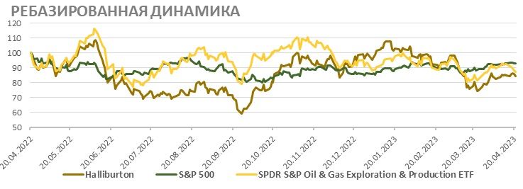 Данные тенденции, конечно, позитивно влияют на нефтесервисный сектор, в котором мы выделяем акции Halliburton, сильной стороной которой является высокая доля перспективного рынка Северной Америки в выручке. Кроме того, на фоне нормализации долговой нагрузки СД компании принял политику, предусматривающую выплату 50% свободного денежного потока в виде дивидендов и обратного выкупа акций. Суммарная доходность выплат акционерам в 2023 году может составить 2,7%, а в 2024 году увеличиться до 4,4% на фоне ожидаемого роста FCF. Наша текущая целевая цена по акциям Halliburton составляет $37,6, что соответствует апсайду 12,6%.