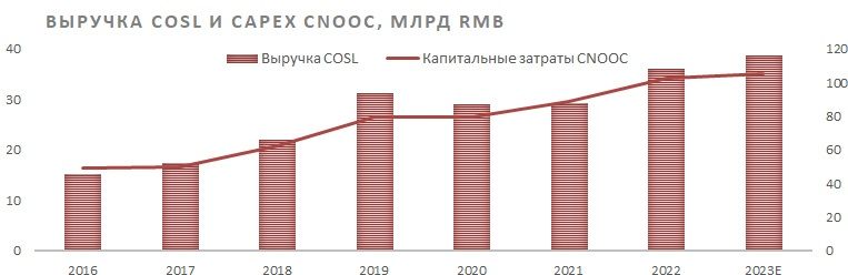 China Oilfield Services является нефтесервисной компанией, специализирующейся на шельфовой добычи. Ее материнской компанией и крупнейшим клиентом является CNOOC, которая регулярно увеличивает объем добычи и инвестиционной программы. Текущие планы CNOOC предполагают рост добычи углеводородов на 17-19% к 2025 году до 730-740 млн баррелей нефтяного эквивалента (б.н.э.) и рекордную инвестиционную программу в 100-110 млрд юаней в 2023 году. На этом фоне в текущем году выручка China Oilfield Services может вырасти на 8% (г/г), а EBITDA — на 30% (г/г) и продолжить увеличиваться в будущем. На фоне позитивных среднесрочных и долгосрочных перспектив бизнеса China Oilfield Services мы считаем ее акции интересными для покупок. Наша текущая целевая цена по ним составляет 10,88 HKD, что соответствует апсайду 22,1%.