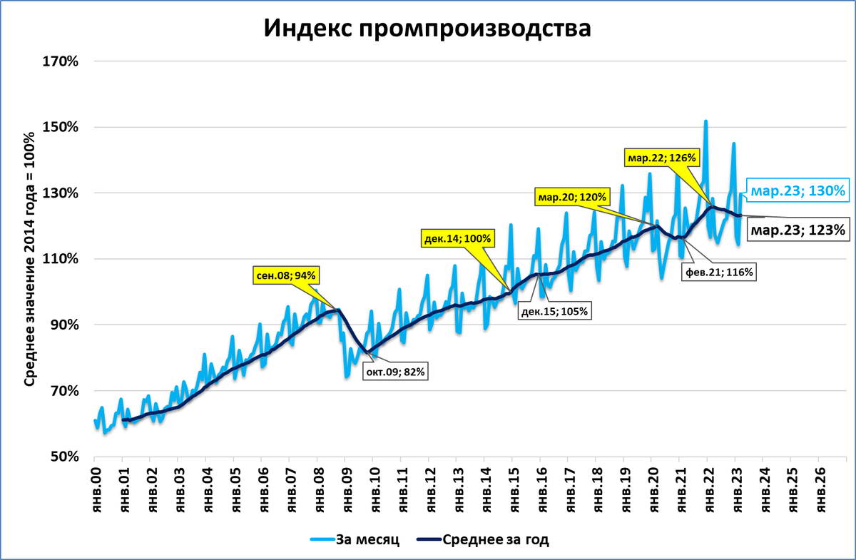 Важно отметить: по объёмам промпроизводства нынешний март стал рекордным среди всех мартов за всю постсоветскую историю.