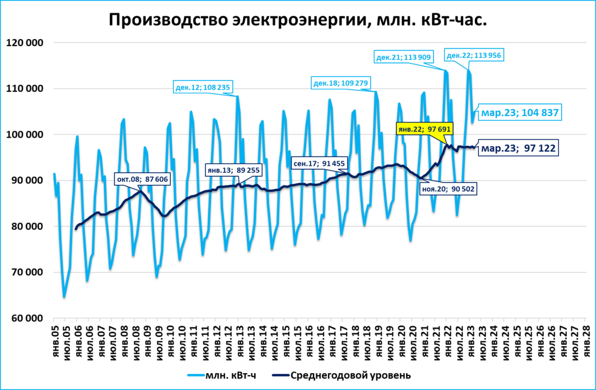 Это около 104,8 млрд. кВт-часов электроэнергии.