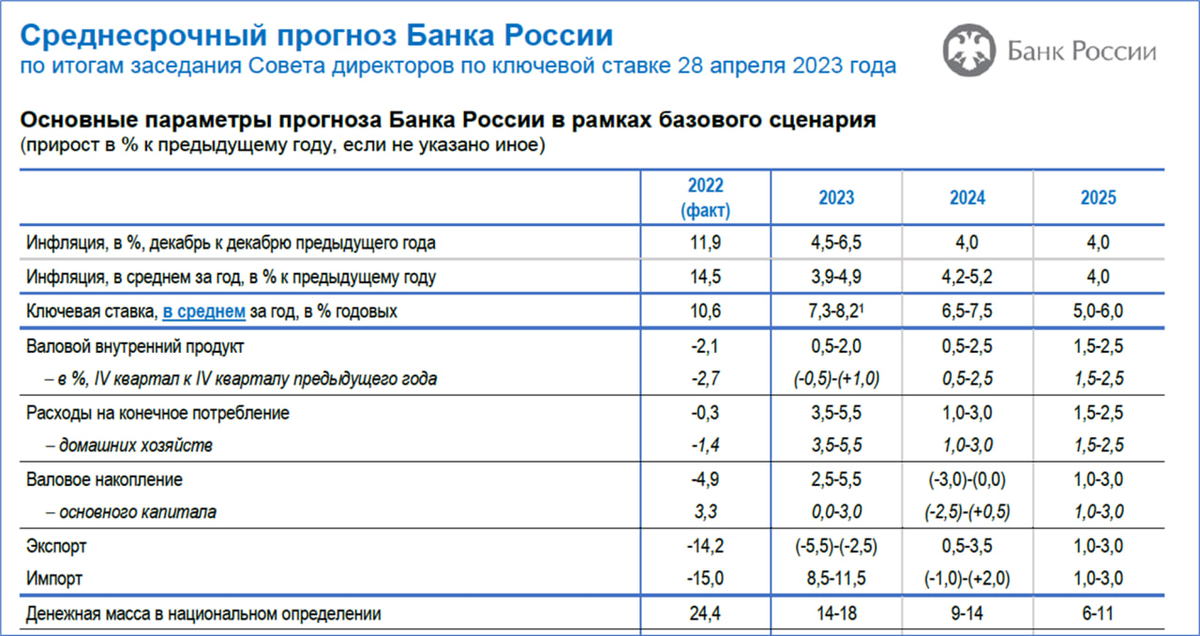 Февральский прогноз ЦБ предполагал рост ВВП в 2023 году в диапазоне -1%...+1%.