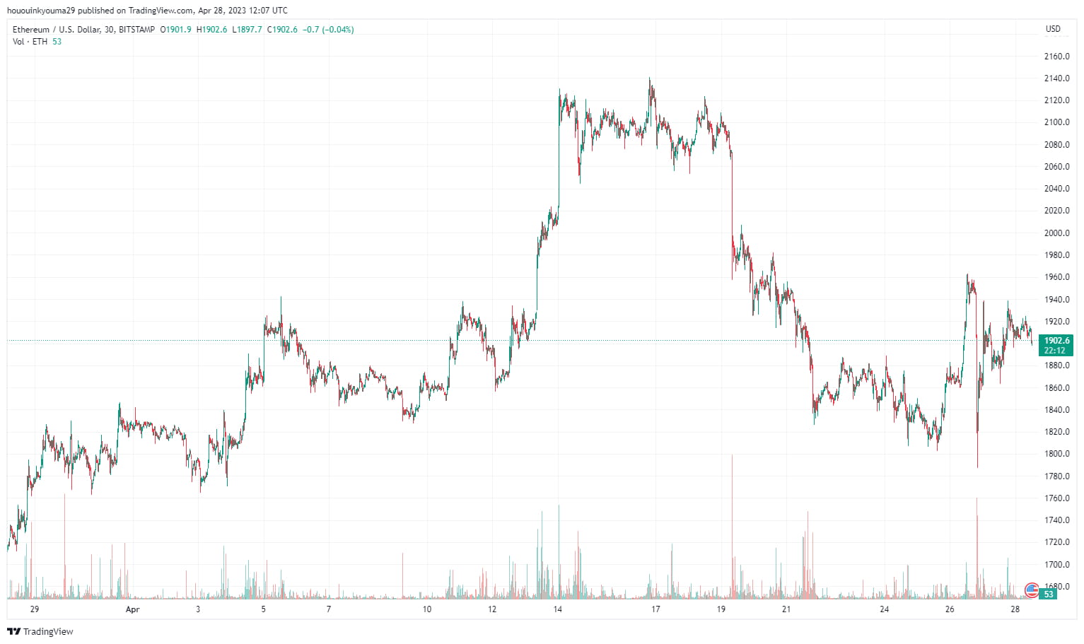 ETH, как и биткоин, в апреле прибавил в стоимости почти 3%, об этом свидетельствуют данные CoinGlass.