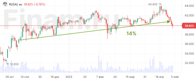 Со времени выхода идеи от 8 ноября 2022 г. на покупку котировки акций «Русала» на МосБирже поднялись на 14% к 2 мая 2023 г., когда мы отозвали рейтинг «Покупать» и отправили их на пересмотр после того, как совет директоров «Норникеля» рекомендовал акционерам не выплачивать дивиденды за 2022 г. Основой устойчивости «Русала» являются доступ к дешевой электроэнергии в России и доходы от владения блокирующим пакетом акций «Норникеля». При этом эти доходы составляли большую часть прибыли «Русала» и зачастую превышали прибыль от собственной операционной деятельности, т.к. компания сильно зависит от импорта сырья. Мы намерены заново оценить компанию и пересмотреть целевую цену акций, исходя из новых обстоятельств.