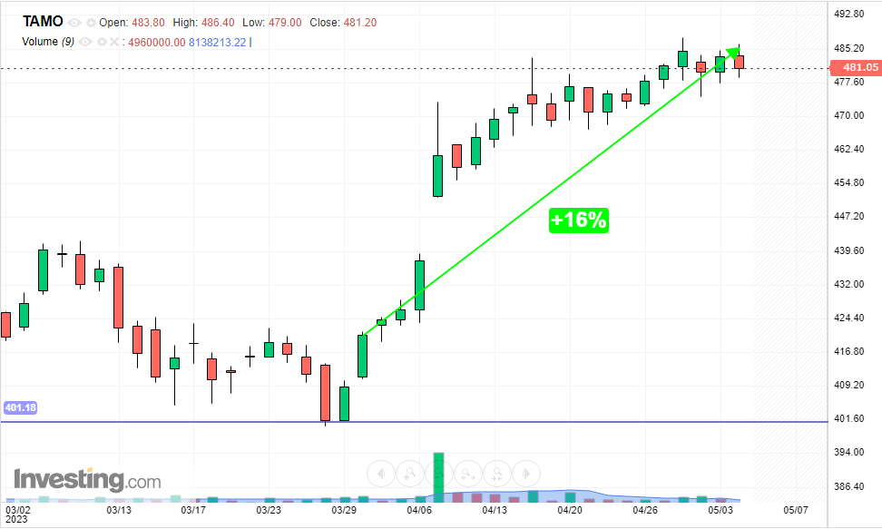После выпуска идеи на покупку акций индийского автопроизводителя Tata Motors 31 марта, его акции выросли в стоимости на 16%. Акции укрепились на хорошем отчете о продажах Jaguar Land Rover (крупнейший сегмент Tata Motors по выручке) в 4 кв. 2023 года (январь – март) и новостях о выходе на положительный свободный денежный поток по итогам года, а также планах британского автопроизводителя инвестировать 15 млрд фунтов в течение следующих 5 лет в развитие предложения электромобилей. Апсайд до целевой цены (507,0 INR) составляет 5%.