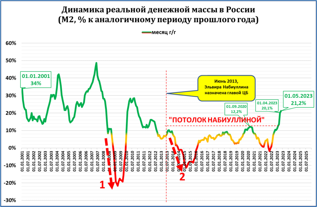 ● Реальная денежная масса растёт быстрее 20% второй месяц подряд. Такое происходит впервые с 2010 года.