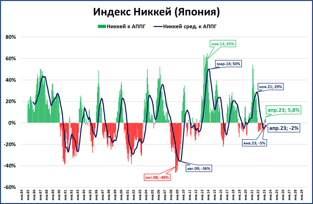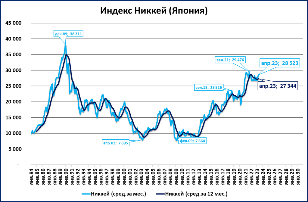 ● Японский фондовый индекс Никкей вырос в апреле на 5,8% годовых.