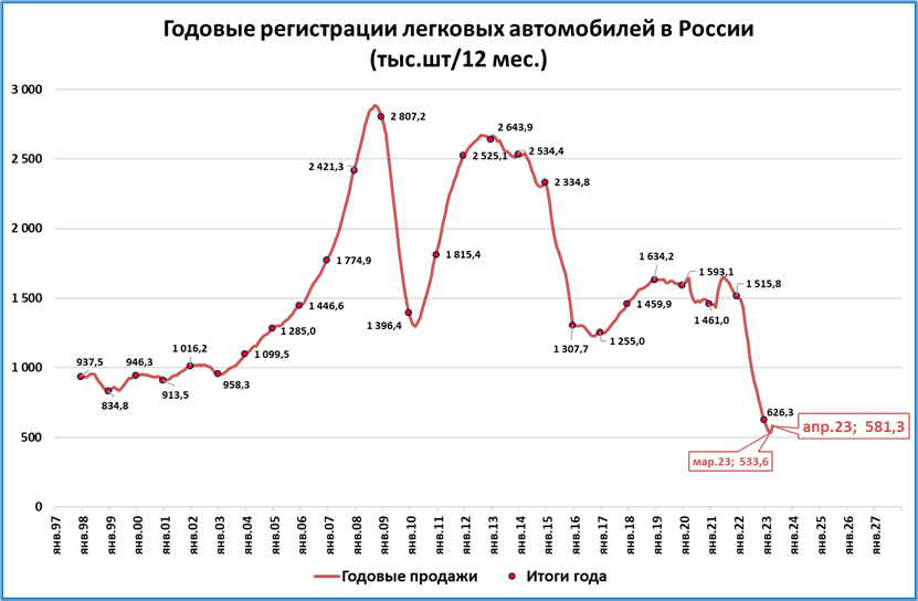 Продажи за последние 12 месяцев подросли до 581 тыс.