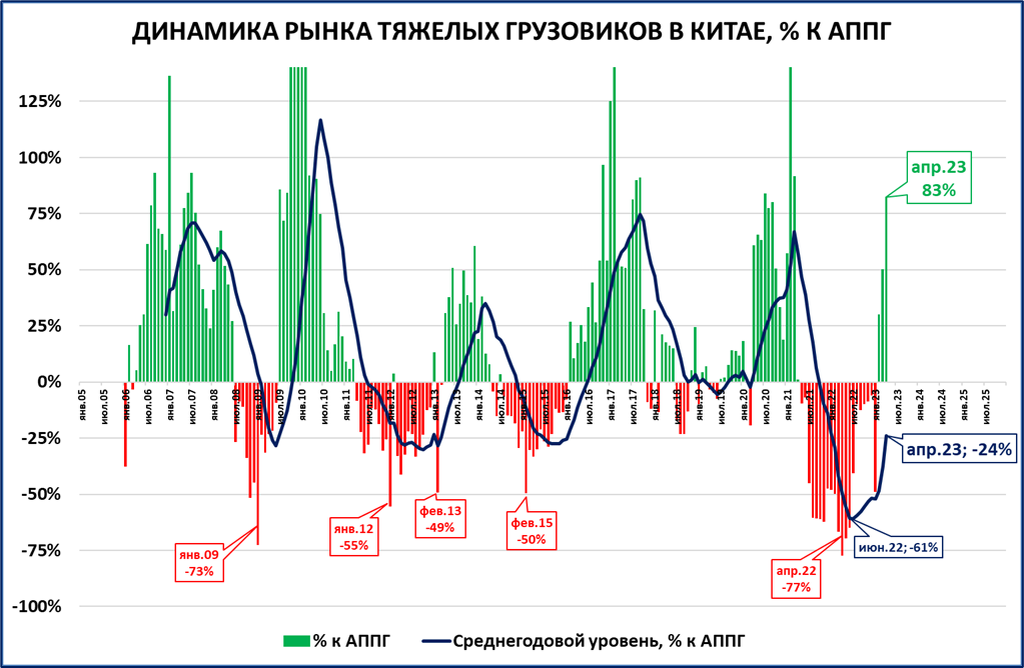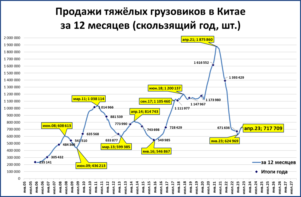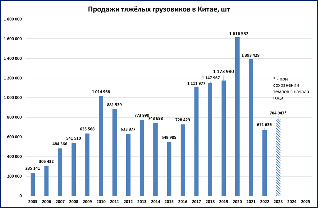 Напомним, что данная статистика, как выяснилось, отражает не столько продажи на китайском рынке, сколько продажи произведённых на территории Китая грузовиков (включая те, которые потом экспортируются).