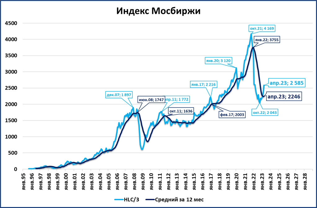 В апреле индекс Мосбиржи вырос до 2 585 пунктов.