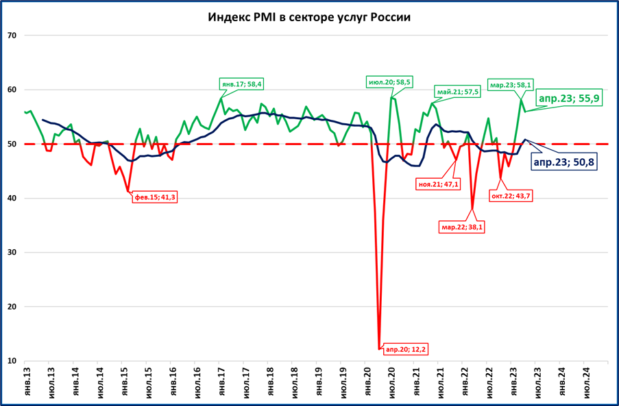 PMI в секторе услуг (55,9 пункта) тоже говорит о росте деловой активности.