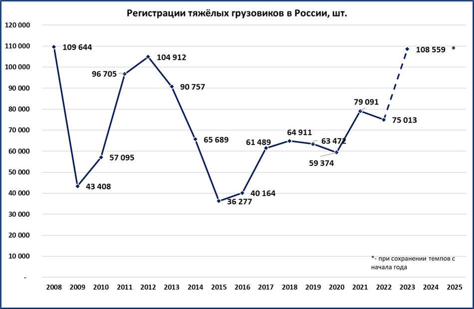 Если темпы роста первых четырёх месяцев (+45%) сохранятся до конца года, то рынок в 2023 году вырастет примерно до 108 тыс. шт.