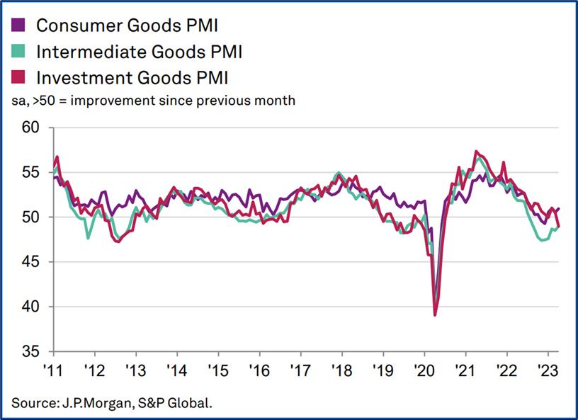 ● Однако за счёт сектора услуг, где деловая активность хорошо растёт, композитный индекс деловой активности (объединяющий в себе и промышленность, и услуги) показывает хороший рост.
