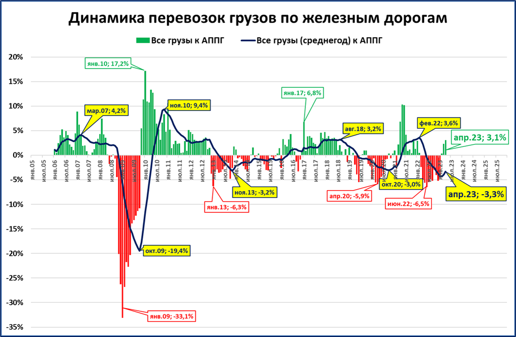 Это уже третий месяц роста подряд. По нашей предварительной оценке, объём перевозок в апреле составил около 106 млн. тонн.