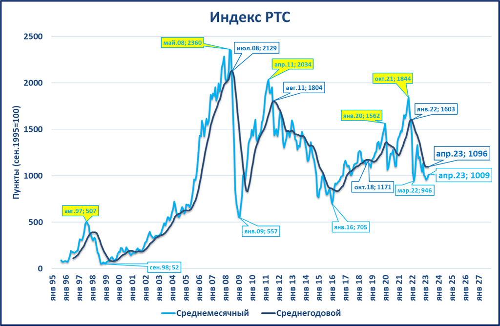 Индекс РТС в апреле подрос до 1009 пунктов.