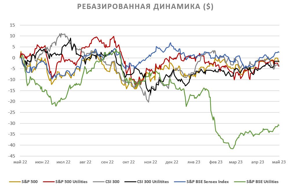 В январе 2023 года регулятор CEA обратился к компаниям отрасли с просьбой отложить закрытие угольных ТЭС по крайней мере до 2030 года и рассмотреть возможность продления их работы с необходимыми мероприятиями по модернизации. В краткосрочной перспективе это положительно скажется на работе сектора, который в значительной мере полагается на угольную генерацию (ответственна за 50% установленной мощности энергосистемы страны). Однако рынки восприняли новость в негативном ключе: задержка декарбонизации означает высокую зависимость сектора от волатильных котировок на уголь, что делает цены на Электроэнергию в стране самыми высокими в Южной Азии. Этим фактором объясняется значительное отставание динамики отрасли от широкого рынка в лице S&P BSE Sensex за последний год (-33,5%).