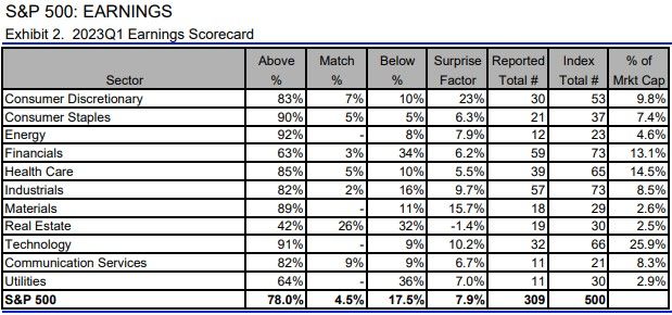 Погодные условия стали фактором давления на результаты компаний в I квартале. По подсчетам Refinitiv, на конец недели 24-28 апреля из 11 отчитавшихся компаний сектора лишь 64% смогли превзойти консенсус по чистой прибыли на акцию при среднем показателе по S&P 500 на уровне 78%. Это третий худший результат после финансового сектора и сектора недвижимости.
